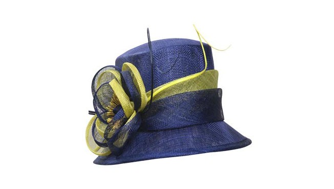 帽子整體采用比軟寧?kù)o的秀場(chǎng)大熱的深蘭色,搭配明亮的黃色,大膽而不張揚(yáng),優(yōu)雅的貴族氣息。