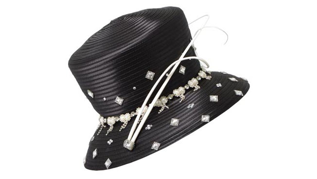 優(yōu)質(zhì)的環(huán)保色丁布料,塑造出了一個(gè)高大挺括的帽身,金銀剔透的裝飾更增添了它的高貴。